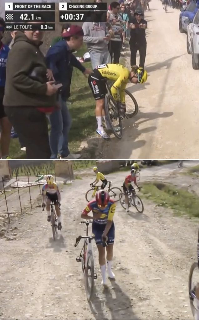 Ce week-end, Pauline faisait sa reprise sur la “Strade Bianche” en Italie. Après une chute l’an dernier, qui l’avait ennuyé une grosse partie de la saison, Pauline à connu cette année de nouvelles mésaventures.