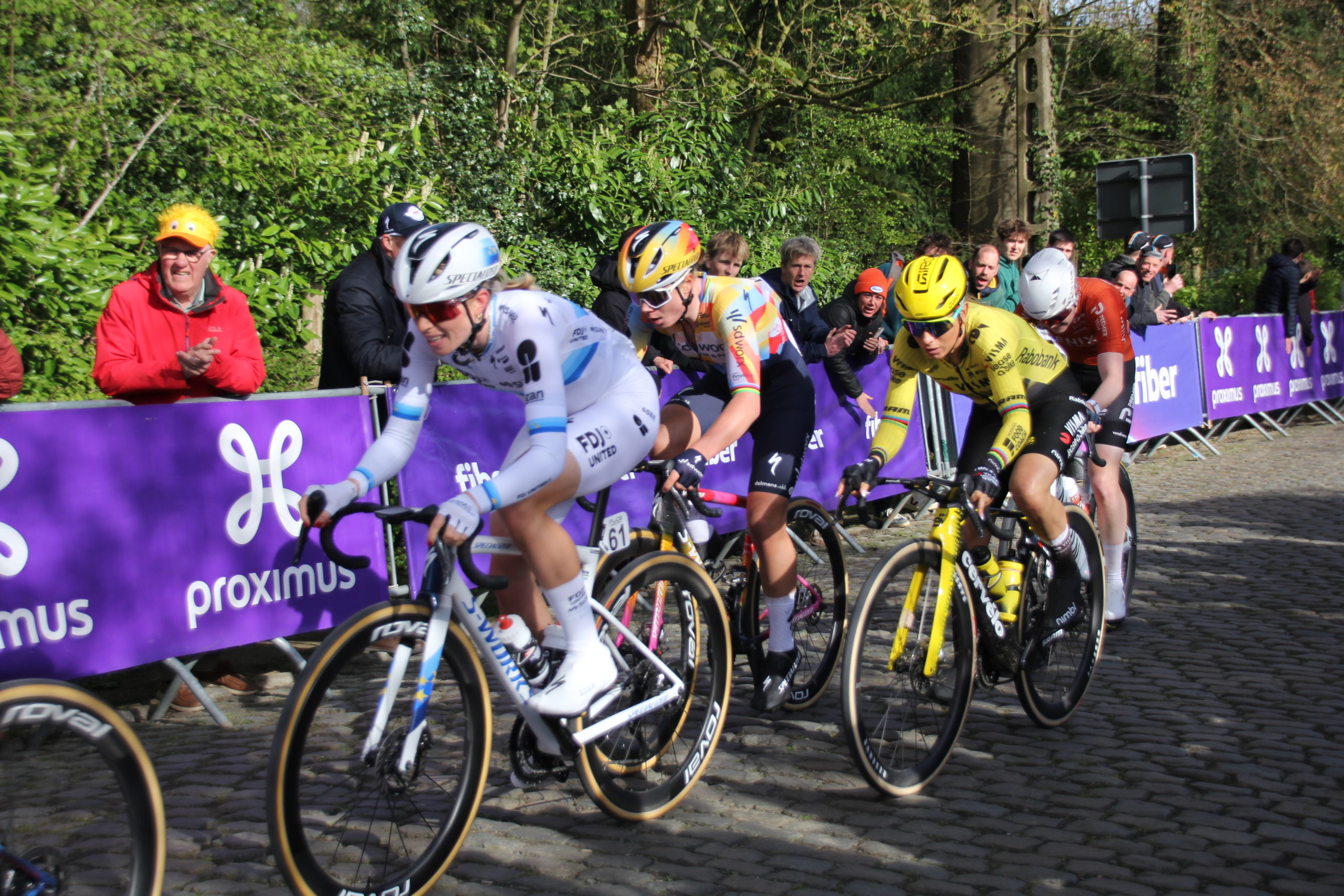 A l’approche des derniers monts pavés, un groupe s’isole composé des principales favorites dont Pauline. Malheureusement, lors de l’ascension du Vieux Quaremont, Demi Vollering accélère et personne ne parvient a garder la roue de la championne d’Europe qui l’emporte.